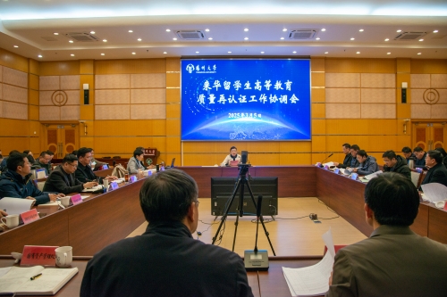 3月5日,学校召开来华留学高等教育质量再认证协调会。副校长蔡颖蔚主持会议并讲话。